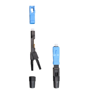 Quick Assembly Connector with unique mechanical splice V-groove technology, can provide a fast, easy and stable termination of fibers in the field. Both SC single-mode and multi-mode connector options are available for 2.0×1.6mm, 3.1×2.0mm flat, and 3mm round drop cable applications allowing the installer to terminate and make the connection in 3 minutes in the field.