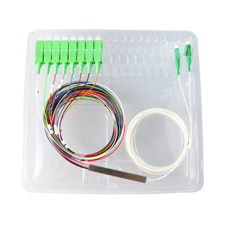 PLC splitter (Planar Lightwave Circuit Splitters) is a passive device that does not require external energy, as long as it has input light.PLC Splitter is a key component in FTTx including a splitting ratio from 1(2) x 2, to 1(2) x 64, highly stable across temperature and wavelength providing low insertion loss, low input polarization sensitivity, excellent uniformity, and low return loss. Available in Small Form Factor (Nickel Copper Alloy Encapsulated Case)(Blockless), Module (ABS Box), and Cassette (Slot-In) type. Also comes in various fan-out configurations, tight fiber to 3mm jacket, with pre-terminated fiber optic connectors (SC/FC/ST/LC with APC/UPC).